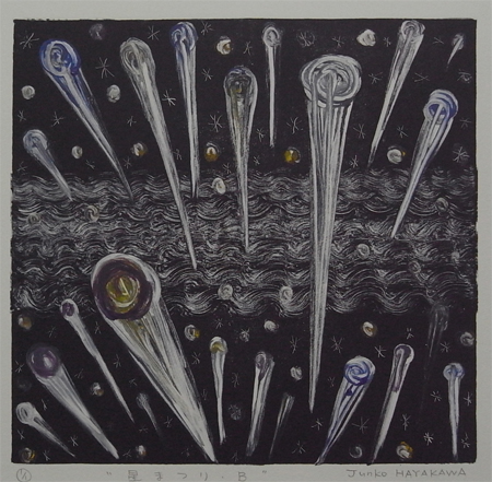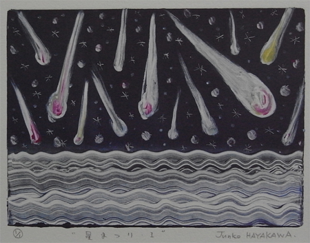 モチーフは流れ星です。空から無数の星が流れています。