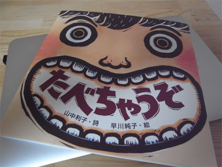 私は最新刊の「たべちゃうぞ」が気に入ったので、迷わず購入しました。これは一つひとつの詩に版画イラストがついているものなのですが、私はこの中の「たべちゃだめ」が好きです。どんな内容かは・・・秘密です(笑。
